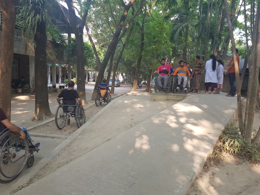 I chose to do Volleyball today due to feeling a bit distant yesterday during basketball and not quite in the mood though I caught myself occasionally staring blissfully at the court and then missing the ball as it flew at me. One lady was sat in her WC at the end of the line with a smile that came with a sigh. The smile that says I am happy to be here, though the circumstances that brought me are not so great. If the ball came to her she would absentmindedly raise an arm or she would throw it when asked but my heart went out to her every time because I just wanted to sit with her and have her tell me her story, word for word. At times like this I wish I spoke Bangla because there’s so much more I want to learn from these people and what they think their future will be.